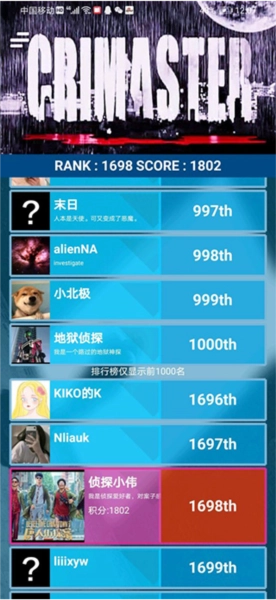 2、游戏设有倒计时机制,玩家需在限定时间内完成侦破题目。若提前完成,剩余的倒计时时间将换算成积分作为奖励。实力越强、解题速度越快的玩家,获得的积分就越高,能快速登上排行榜证明自己,这一机制设计得挺人性化的。