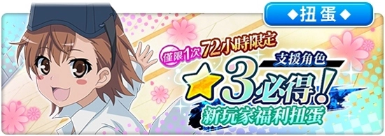 【活动内容】创建角色后,将解锁战斗角色★3必得扭蛋与支援角色★3必得扭蛋。