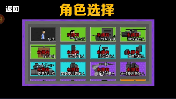 2、进入“角色选择”界面,初始状态下仅学生角色处于解锁状态,其余角色需玩家通过多种方式获取。