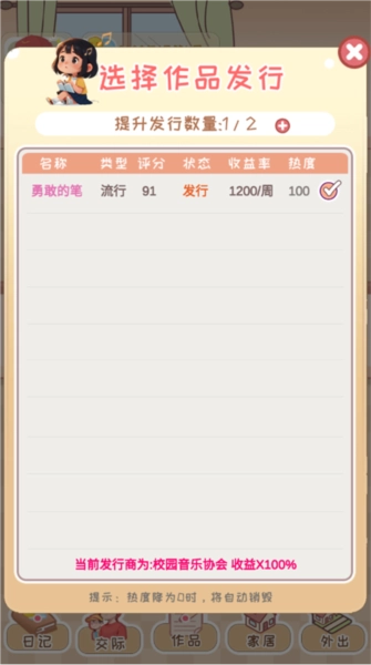 6、现在玩家就可以选择发行自己的作品,从中获取收益了。