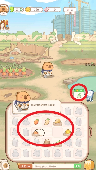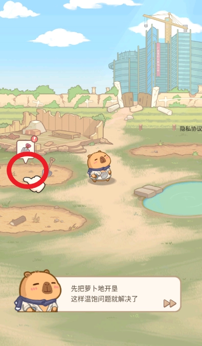 点击如图土地开垦种植萝卜,解决温饱问题