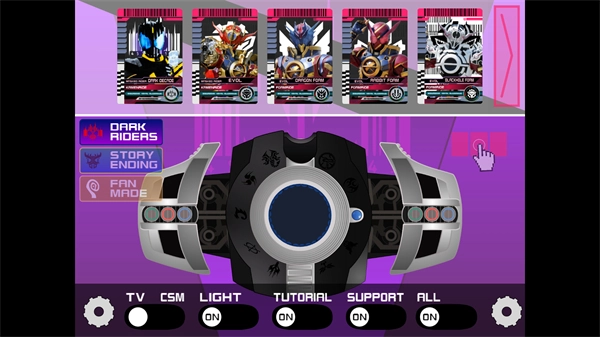 2、模拟真实的变身流程,多样的按钮可供挑选,一键即可启动,还原度拉满,让你沉浸式欣赏假面骑士黑暗帝骑完整的变身过程。
