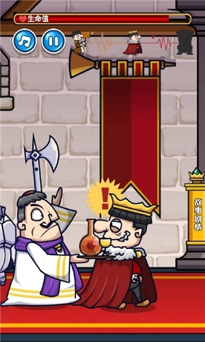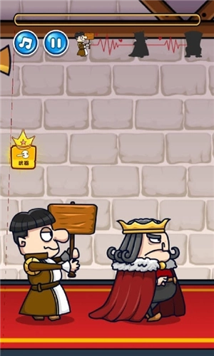 1、当角色靠近国王时,长按屏幕,待上方的蓄力条填满后,角色便会挥刀刺向国王。不过在蓄力的过程中,要是看到国王有回头的动作,手指得立刻离开屏幕,避免被抓住。