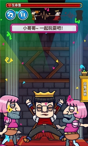 3、采用动漫风格的背景设定,包含大量剧情对白,玩家需时刻警惕背后潜藏的杀机,努力达成成为国王的目标。