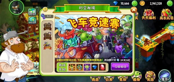 飞车竞速赛此刻正等待你的参与,在这里你可以探索时空秘境,全新的时空联动已经开启。每日签到能获得对应的道具奖励,加入社区还能和众多植物大战僵尸粉丝交流相关攻略、打法,另外还有成长礼包,升级即可领取。