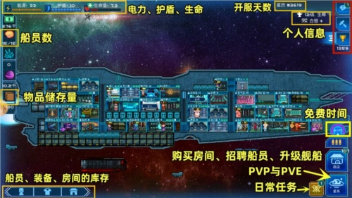 2、在像素星舰,您将全面管理和运营一艘宇宙飞船;