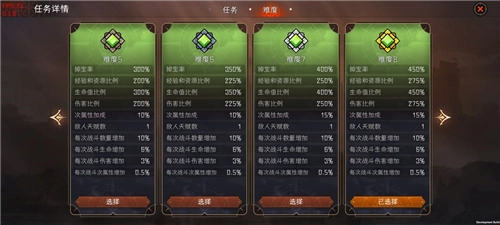 每次战斗时,敌人的数量、生命值、伤害以及各项属性都会提升。这些都属于敌人的加成效果……探险难度越高,每一轮遇到的战斗次数就越多,敌人获得的加成也会相应更高。