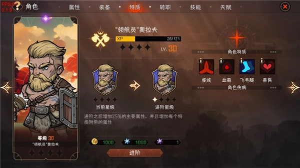 除了常见的等级设定外,角色还具备独特的特质系统。每个角色会依据自身品质随机获取特质,特质种类多达几十种,且每种都有各异的效果,例如“肥胖”特质能提升耐力,却会降低闪避率。当角色完成进阶后,其拥有的所有特质效果也会相应增强。