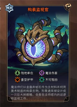 21、神殿守护者,作为巨魔阵营里实力顶尖的小怪,它的击退技能十分棘手,不过该单位惧怕魔法伤害。
