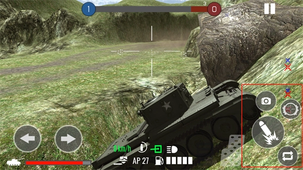7、一旦发现敌方坦克,玩家可点击右下角的攻击按钮发起攻击;