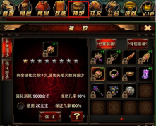 1. 装备支持逐级强化,强化过程需消耗绑金,每次强化存在一定的成功概率,此外也能通过使用元宝来确保100%的强化成功率。