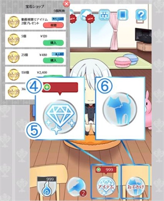 5、这是配置道具。集齐5个可获得一次彩蛋时间,也能恢复(3)中的经验值。初始会赠送5个道具,还请务必多多使用。