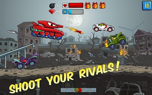 5、选好车辆后,玩家得操控自己的汽车,一边避开前方的障碍物,一边防备其他车辆的攻击。