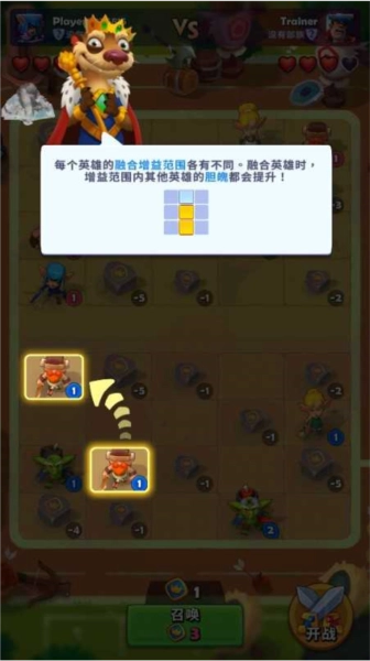 7、融合两个相同的英雄,该英雄就会变得更强!