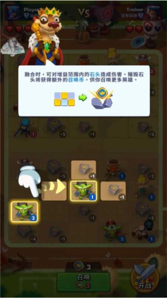 13、融合过程中,能够对增益覆盖范围内的石头造成伤害。当石头被摧毁后,你将获取额外的召唤币,这些召唤币可用于召唤更多英雄。