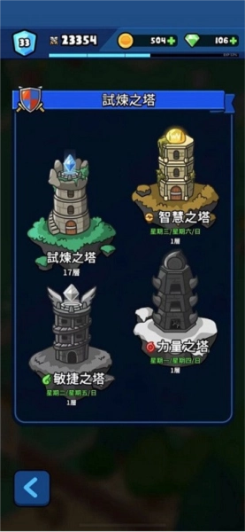 分为常规塔与属性塔两种;常规塔可自行搭配队伍进行挑战,而属性塔则仅限对应属性的角色参与战斗。