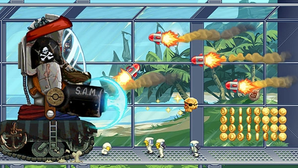 火箭飞人是一款休闲益智类的横版酷跑游戏,玩家需要借助火箭飞行器上的机枪攻击邪恶科学家,同时通过上下飞行躲避工厂里的各类障碍物。游戏制作精良,画面流畅自然,设有多种主题场景,搭配金属摇滚风格的背景音乐,带来全新体验。玩家在游戏过程中能获得大量金币,可用于购买道具,还有更多特殊装备待解锁!别再犹豫,快来加入火箭飞人的挑战吧!
