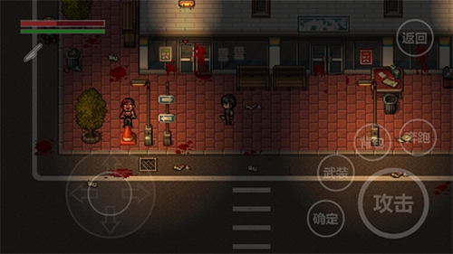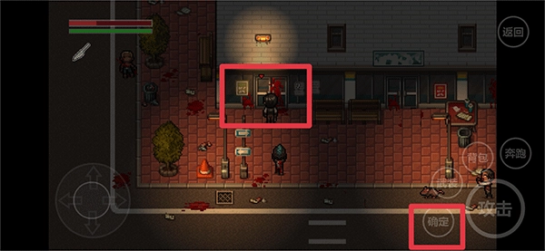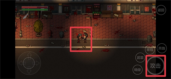 1、开启游戏,按照剧情提示我们要去解救家人,下车后通过左侧轮盘控制角色移动,用右侧攻击键消灭僵尸,接着操控角色移动到道具处获取小刀。