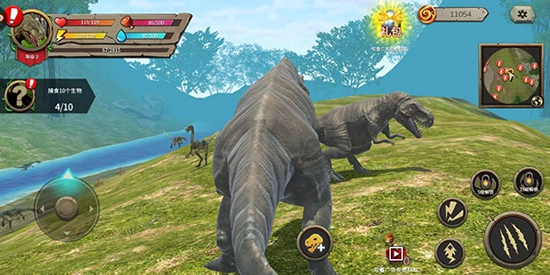 移动操控:借助屏幕左下方的轮盘,你可以操控恐龙移动,以此探索周边环境或者靠近敌人。