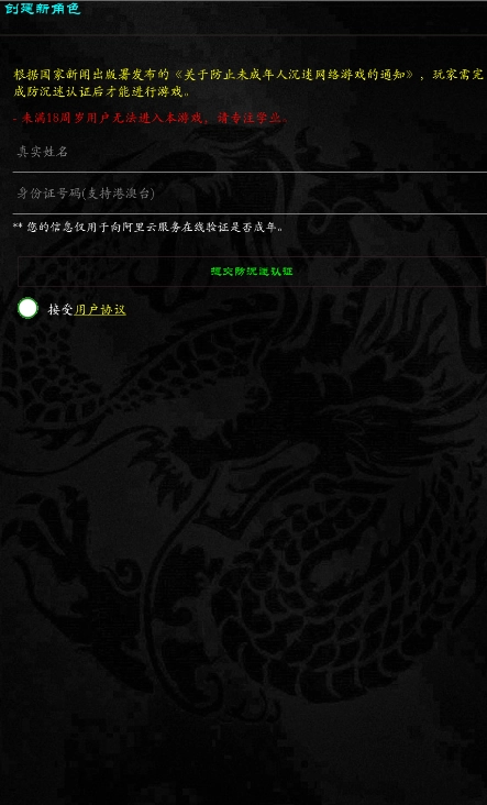 2、以青龙为例点击进入,创建新角色并完成身份验证。