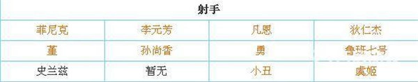 菲尼克对应李元芳,凡恩对应狄仁杰,堇对应孙尚香,勇对应鲁班七号,小丑对应虞姬。