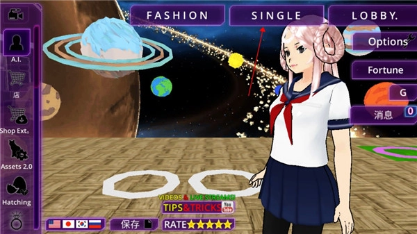 1、打开女子校园模拟器,选择左下方【国旗】图标,