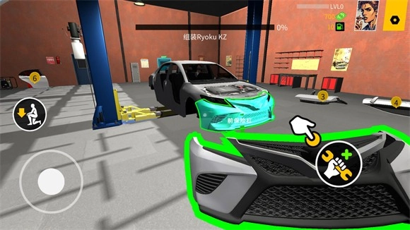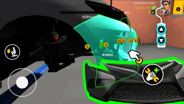 2、靠近车辆部件时,可以点击右下角按钮将其拿起。