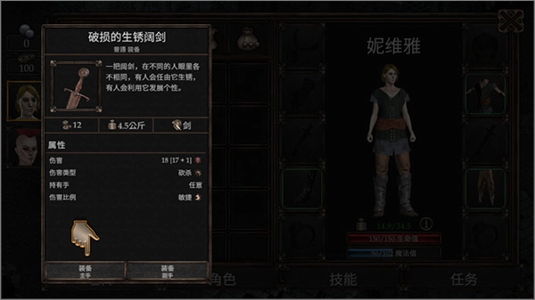 4、玩家在旅途过程中会遭遇各类危险,此时可以打开装备栏,挑选一件武器来保护自身安全;