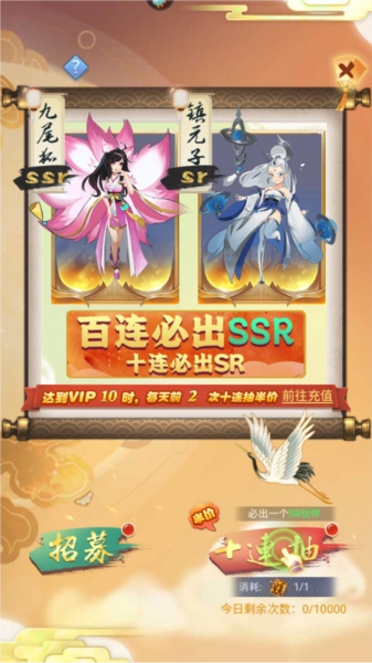 6、修仙途中,你可以挑选伙伴,点击十连抽功能,就能抽取属于你的修仙伙伴。