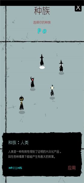 3、接下来要介绍的是种族设定,一共有5个种族,分别是人类、精灵、恶魔、灵体和南瓜灯,每个种族都有着独特的特性。