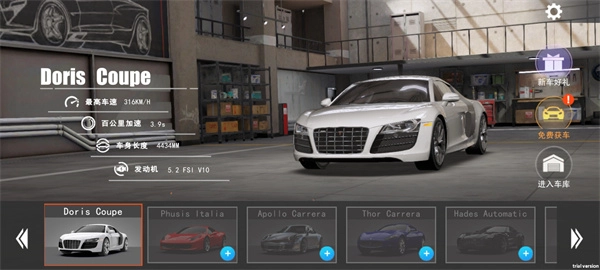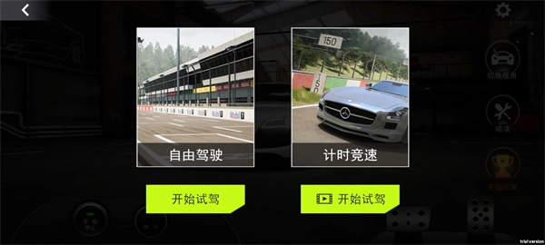 3、玩家可依据自身需求进行试驾,系统提供自由驾驶和计时竞速两种模式供玩家选择。