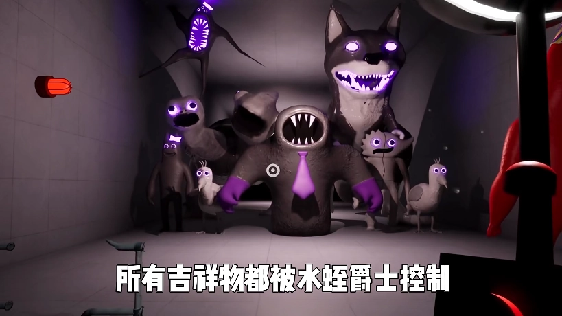 在第六章的末尾,所有的吉祥物都落入了水蛭爵士的掌控,周身散发出诡异的紫光。