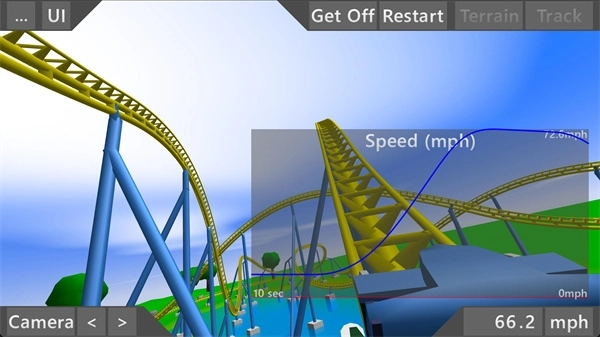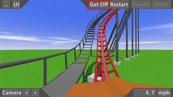 6、过山车建造完成后,点击“Ride”按钮,我们就能以第一人称视角体验那份刺激感;
