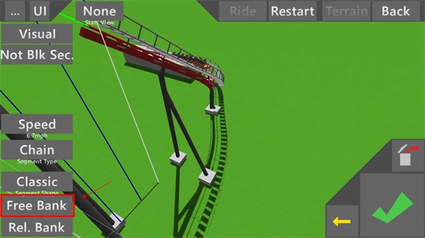 4、点击“Rel.Bank”按钮,我们可以让轨道以地图或上一节轨道为基准进行倾斜;
