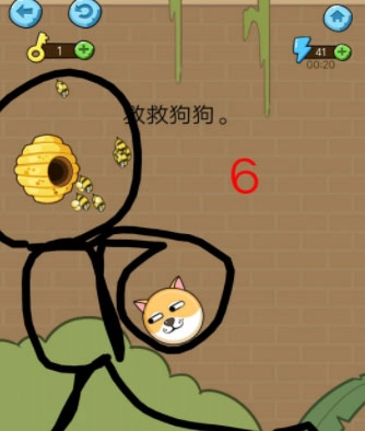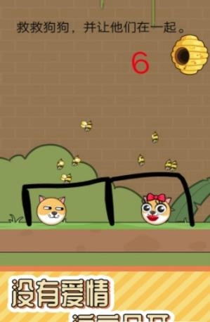 1、画面依旧简单简洁又清新,画风还是那么滑稽魔性,要被解救的小狗狗在画面里一脸滑稽,完全没有被蜜蜂攻击的紧张感,特别可爱。