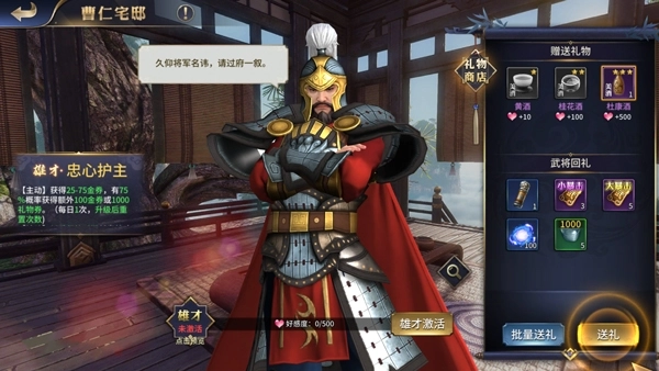 3、玩家能够招募将领,借助提升好感度的方式来解锁将领的雄才技能。
