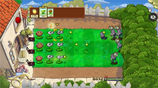 豌豆输出流(满天花雨)的战术要点如下:开局先种植向日葵,接着补充100阳光的豌豆;待阵型稳定后,将两列向日葵补齐;经济状况好转后,部署3管豌豆和双倍速豌豆(后续可升级为机枪豌豆);在豌豆前方放置火炬树墩——这是这套战术的核心,依靠树墩实现双倍攻击效果;最后在阵线最前端用大墙果作为防御屏障。