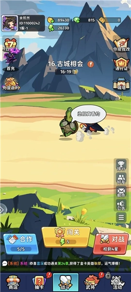 进入主界面后,点击【闯关】按钮就能进入战斗地图,选择关卡开启你的冒险旅程。
