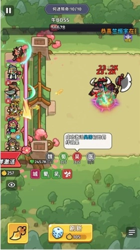每场战斗开始前,你可以点击【刷新】按钮来召唤武将,系统会随机生成三位英雄让你挑选,合理搭配阵容是取得胜利的关键所在。