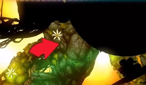 如图所示,玩家需要撞击这根针来触发机关,使右侧的黑色障碍物散开(撞击针不会导致角色死亡)