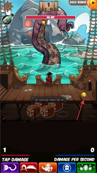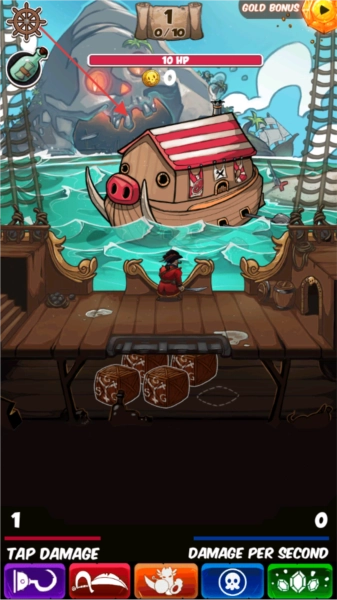 在《海盗点击者》里,就算你处于离线状态,你的海盗船员依然会继续和泰坦怪物战斗。