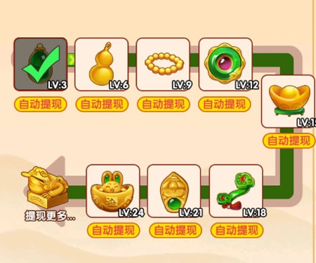 6、合成出指定等级的物品就能获得额外的提现红包,而且等级越高,可获得的奖励也就越多。
