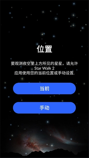 1、打开星空漫步2,首次使用需要获取当前位置;