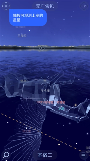 3、滑动页面,找到仙后座所在的位置,在它附近能看到天鹅座、蝎虎座、仙王座以及天津四等天体,在这个区域就能观测到银河。