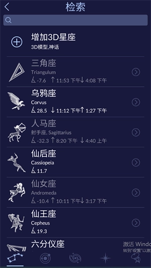 5、点击左下角放大镜检索可以查看星座、星系等。