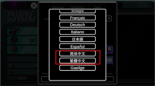 4、打开语言设置栏,玩家通过下拉菜单选择简体中文或繁体中文,就能将游戏内语言设置为中文。