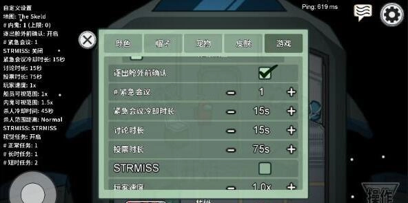 4、这里提供了丰富的设置选项,涵盖玩家移动速度、投票时长、视野范围以及任务数量等多项内容。
