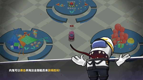 1、玩家将化身内鬼,潜入一艘载满船员的飞船,内鬼可通过袭击手段淘汰所有船员以取得胜利!