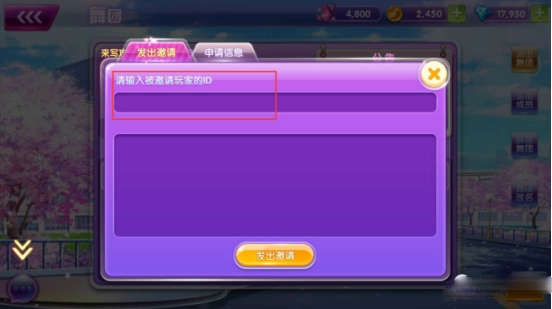 点击发送邀请,输入玩家ID后点击发送就行。在旁边的申请信息里,能看到想要加入舞团的玩家!团长可以选择“同意”或者“拒绝”来决定是否让该玩家加入舞团!