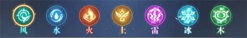 中的元素包含风、水、火、土、雷、冰、木这七种,每种元素都配备有相应的元素装备和战技。